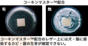 わんにゃんスマイル畳は表面に「コーキンマスター™」を施しています。372種類以上の菌・カビに効果を発揮。悪臭やアレルギーの原因になる菌・カビの増殖を抑えます。お子さまがいるご家庭にもオススメです。